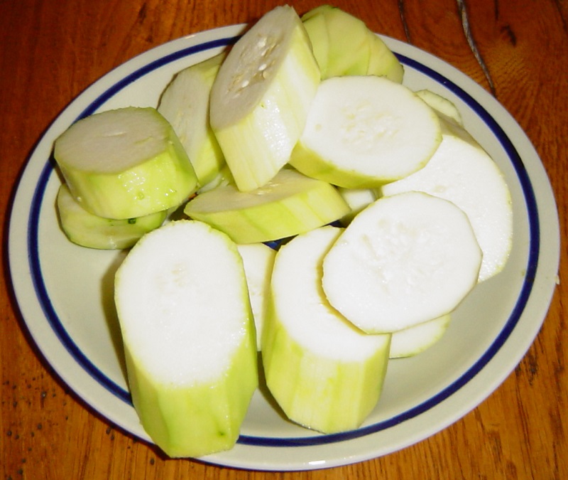 کدوها را پوست کنده، من معمولا اگر پوست کدوها تازع و بدون لکه باشند با پوست سرخ می کنم، آنها را بطور مورب بقطر 2 سانتیمتر برش بدهید.